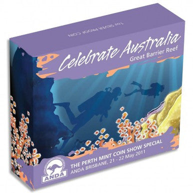 2011 $1 ANDA Brisbane Coin Show Special Celebrate Australia Great Barrier Reef 1oz Silver Coloured Proof Coin