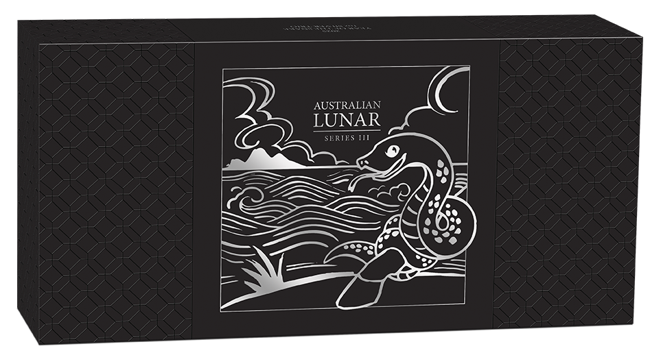 In pursuit of the fifth placed dragon, the horse was unnerved by the sight of a snake wrapped around its hoof. As it reared in fright, the snake uncoiled itself and slithered over the line to claim sixth place. The reverse of each coin portrays a coiled snake on the ground beneath hanging leaves. Included in the design is the Chinese character for ‘Snake’ the inscription ‘SNAKE 2025’ and The Perth Mint’s ‘P’ mintmark.