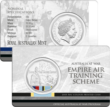 2015 50c Australia At War Empire Air Training Scheme Coloured Uncirculated Coin