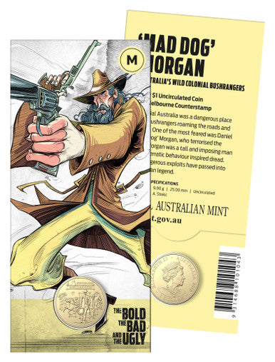 2019 $1 Australian Bushrangers The Bold The Bad and The Ugly 'Mad Dog' Morgan 'M' Counterstamp Uncirculated Coin