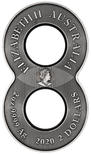 2020 $2 Figure 8 Dragon & Phoenix 2oz Silver Antiqued Coin