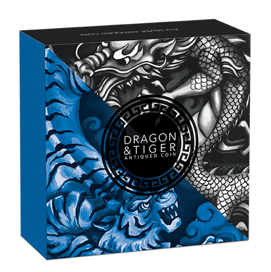 2021 Dragon and Tiger with Bagua 2oz Silver Antiqued coin