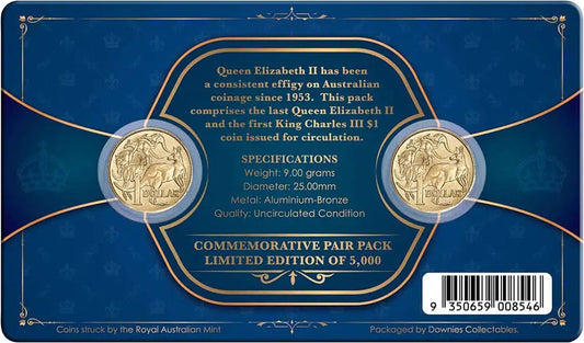 2022 Last Elizabeth II $1 & 2023 First Charles III $1 Al-Bronze 2 Coin Set