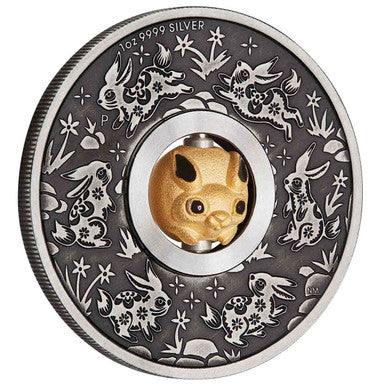 2023 Year of the Rabbit $1 Rotating Bead 1oz Silver Antique Coin
