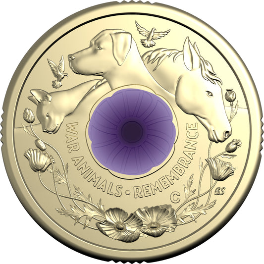 2024 $2 War Animals Remembrance Purple Poppy 'C' Mintmark Coloured Uncirculated Coin