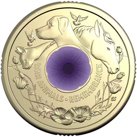 2024 $2 War Animals Remembrance Purple Poppy Coloured Al-Bronze Uncirculated Coin