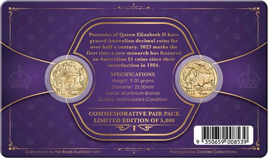 1984 First Elizabeth II $1 & 2023 First Charles III $1 Al-Bronze Uncirculated 2 Coin Set