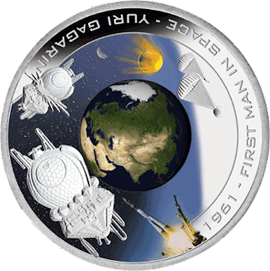 Cook Islands 2008 $1 Orbit and Beyond First Man In Space Yuri Gagarin 1oz Silver Coloured Proof Coin