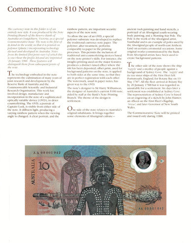 1988 $10 Commemorative Bicentennial Uncirculated Note
