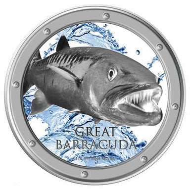Niue 2015 $2 Ocean Predators Great Barracuda 1oz Silver Coloured Proof Coin