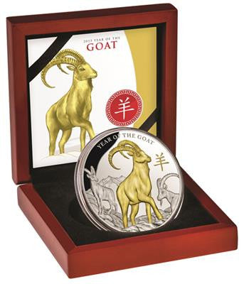Niue 2015 $8 Year of The Goat Selectively Gold Plated 5oz Silver Proof Coin