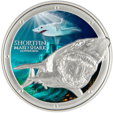 Niue 2016 $2 Ocean Predators Mako Shark 1oz Silver Coloured Proof Coin