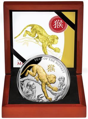 Niue 2016 $8 Year of The Monkey Selectively Gold Plated 5oz Silver Proof Coin