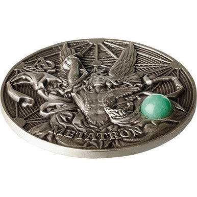 Niue 2016 $5 The Choir of Angels Metatron with Green Aventurine Gemstone Silver Coin