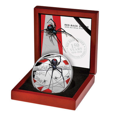 Niue 2020 $10 WMF Red Back Spider 150 Years 5oz Silver Coloured Proof Coin