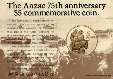 1990 $5 The ANZAC 75th Anniversary Commemorative Coin