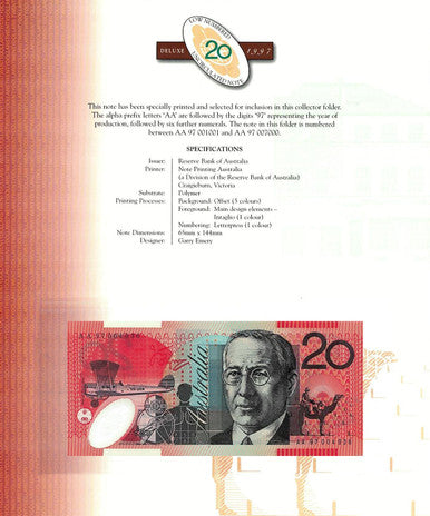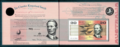 1997 $20 Sir Charles Kingsford Smith Note and $1 Silver Proof Coin Centenary Portfolio