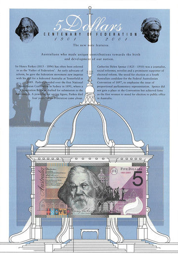 2001 $5 ANDA Show Centenary of Federation Commemorative 6 Note and Folder Set