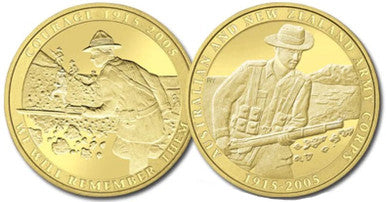 2005 $1 Australia and New Zealand Army Corps 90th Anniversary AlBr Proof 2 Coin Set
