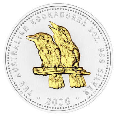2006 $1 Australian Kookaburra 1oz Silver Gilded Coin