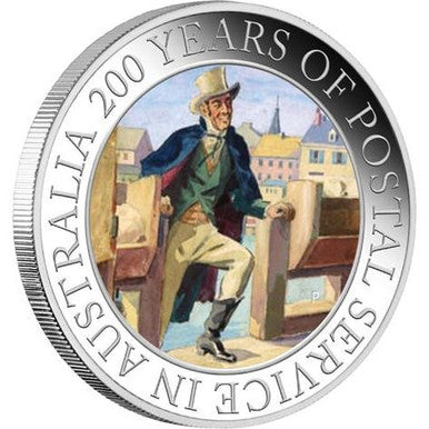 2009 $1 200 Years of Postal Service In Australia 1oz Silver Coloured Proof Coin