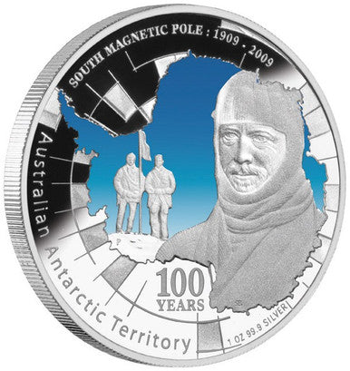 2009 $1 Australian Antarctic Territory South Magnetic Pole 1oz Silver Coloured Proof Coin
