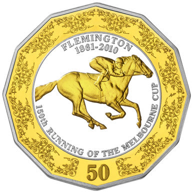 2010 50c 150th Running of The Melbourne Cup Selectively Gold Plated Silver Proof 2 Coin Set