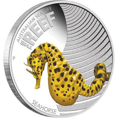 2010 50c Australian Sea Life The Reef Seahorse 1/2oz Silver Coloured Proof Coin
