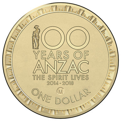2014 $1 World War I 100 Years of ANZAC The Spirit Lives Shrine of Remembrance 'M' Counterstamp Uncirculated Coin