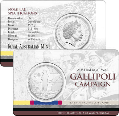 2014 50c Australia At War Gallipoli Campaign Uncirculated Coin