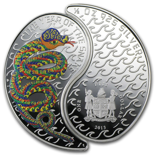 Fiji 2013 $1 The Year of The Snake 1/2oz Silver Coloured Proof Coin