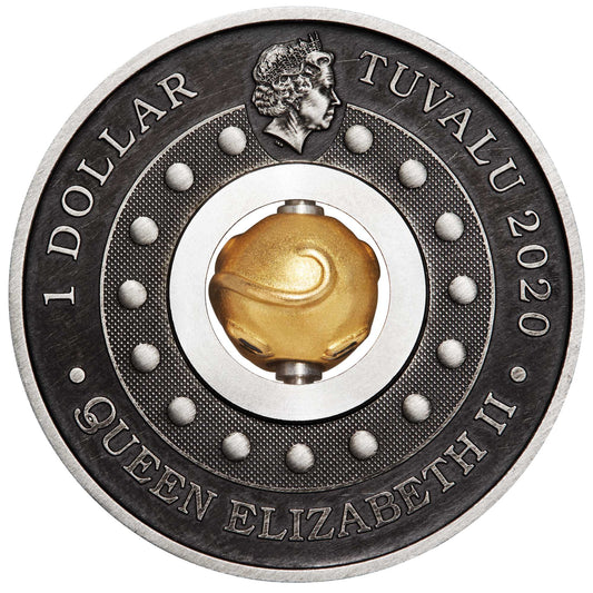 Tuvalu 2020 $1 Lunar Year of The Mouse Rotating Charm 1oz Silver Antiqued Coin