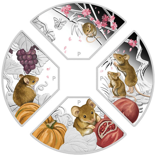 Tuvalu 2020 $1 Lunar Year of The Mouse 1oz Silver Coloured Proof 4 Coin Quadrant Set