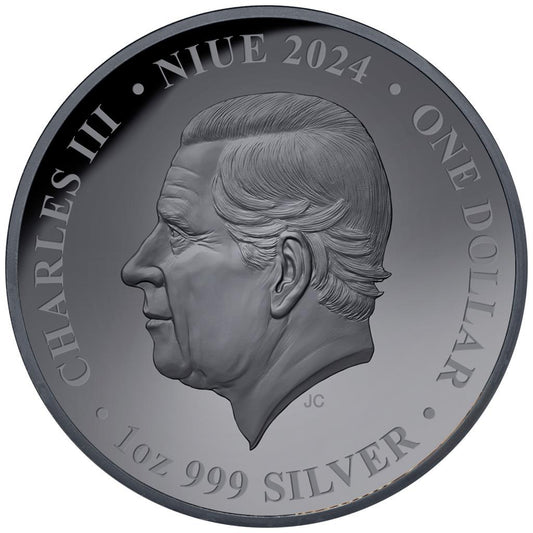 Niue 2024 $1 Lunar Dragon Selectively Gold Plated 1oz Silver Black Proof Coin