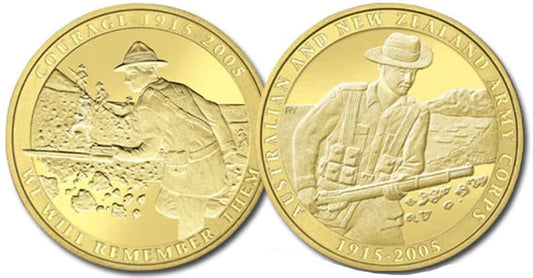 2005 $1 Australia and New Zealand Army Corps 90th Anniversary AlBr Proof 2 Coin Set