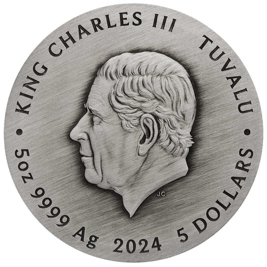 Tuvalu 2024 $5 Five Auspicious Creatures 5oz Silver Coloured Antiqued Coin