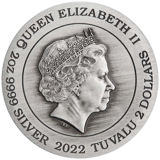Tuvalu 2022 $2 Chinese Mythical Creatures Dragon 2oz Silver Coloured Antiqued Coin