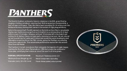 2023 NRL Premiers Penrith Panthers Medallion PNC