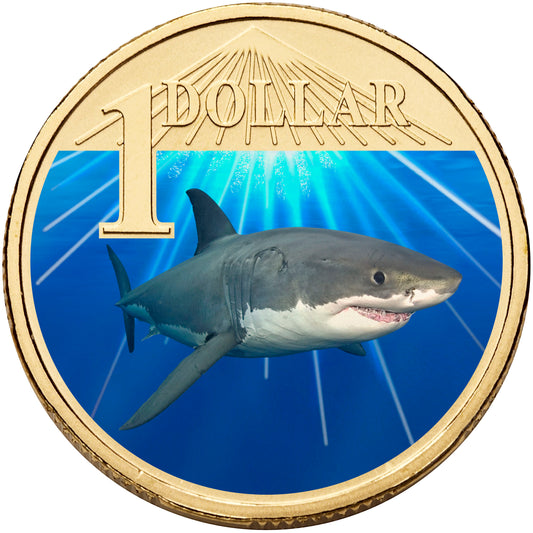 2007 $1 Ocean Series White Shark Coloured Uncirculated Coin