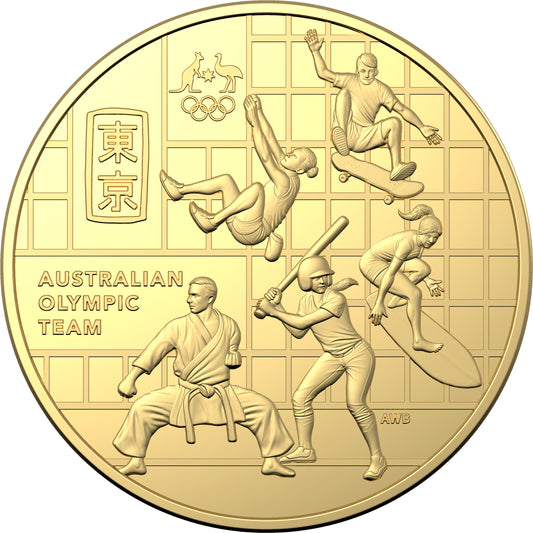 2020 50c Australian Olympic Team Gold Plated Uncirculated Coin