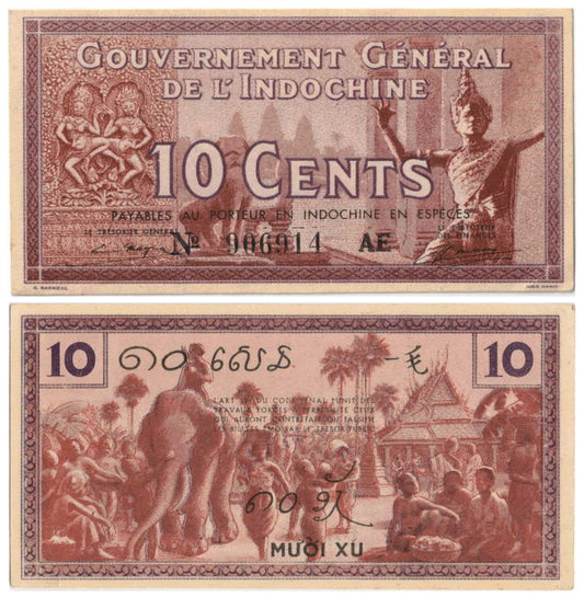 French Indo China ND (1939) 10/20/50 Cents #85d/86d/87d About Uncirculated to Uncirculated Set of 3 Banknotes