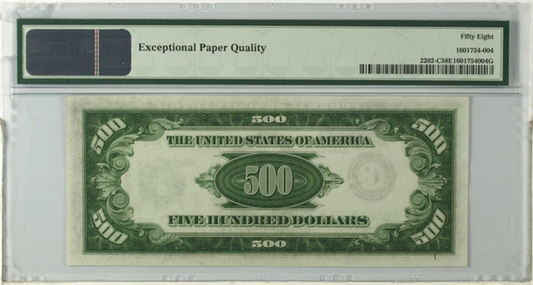 US 1934A 500 Dollars Federal Reserve Note Philadelphia Julian/Morgenthau PMG 58 Choice About Uncirculated Banknote