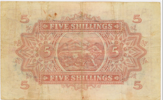 British East Africa, Five Shillings 1st September 1943, About Very Fine