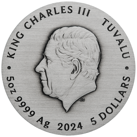 Tuvalu 2024 $5 Starry Sky & Planets 5oz Silver Coloured Antiqued Coin