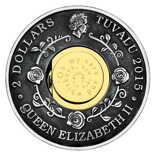 Tuvalu 2015 $2 150th Anniversary of Alice In Wonderland 2oz Silver Antiqued Clock Coin