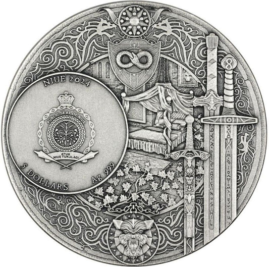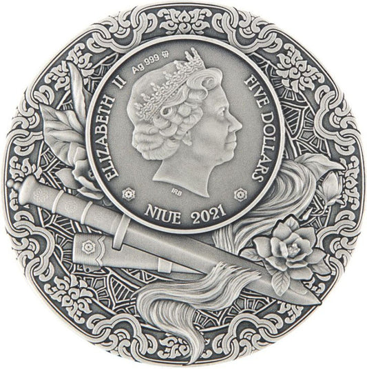 Niue 2024 $5 The Witcher Lady of The Lake 2oz Silver Coloured Antiqued Coin