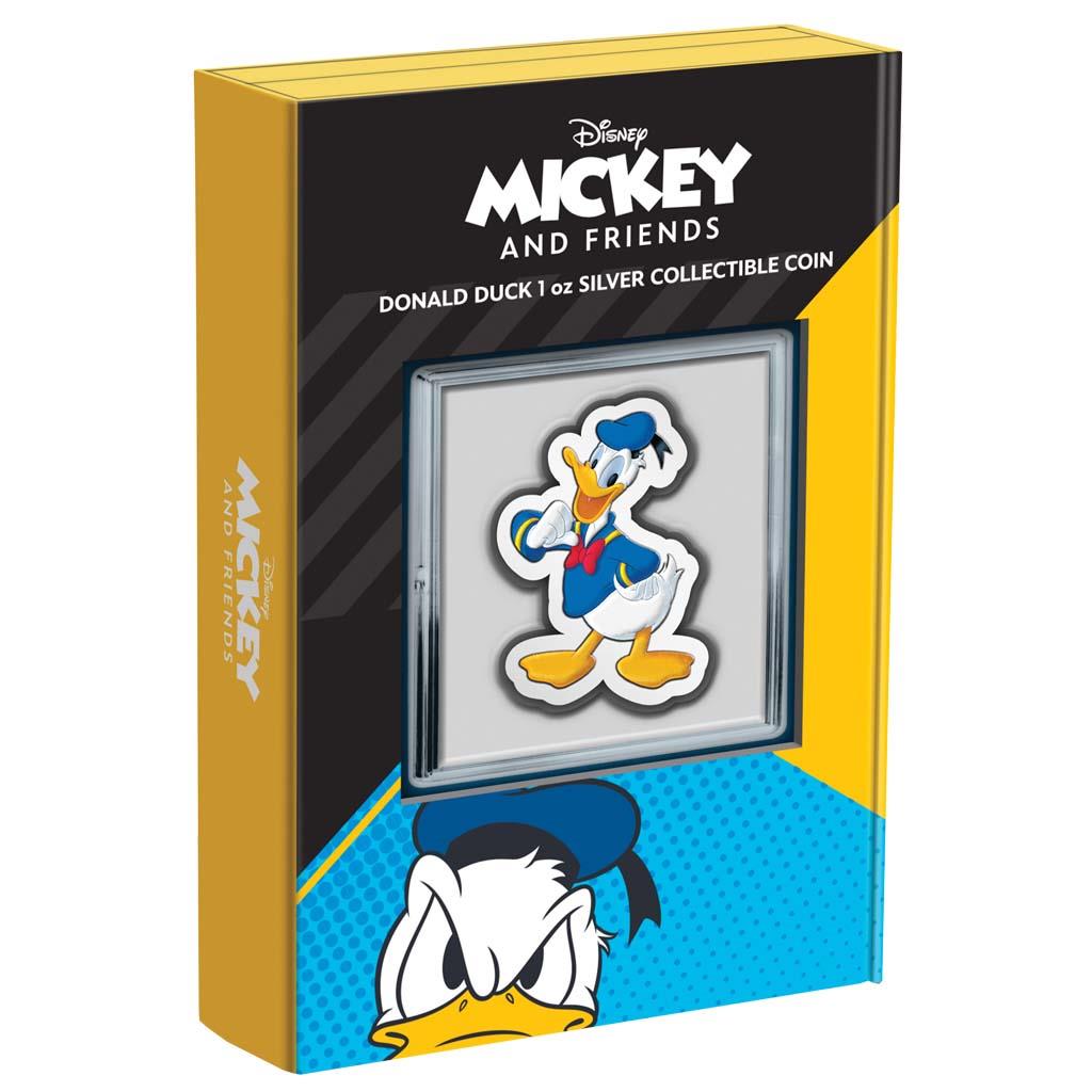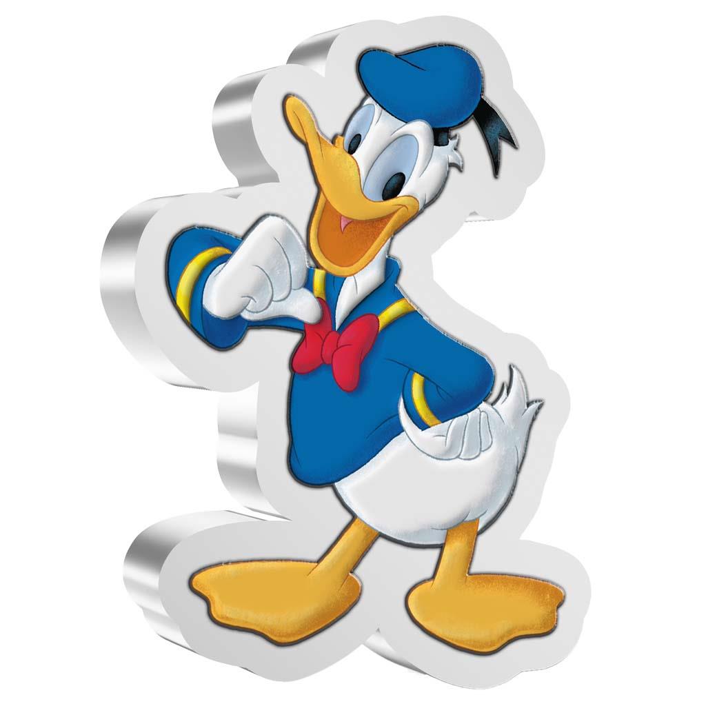 Niue 2021 $2 Disney Mickey and Friends Donald Duck Shaped 1oz Silver Coloured Proof Coin
