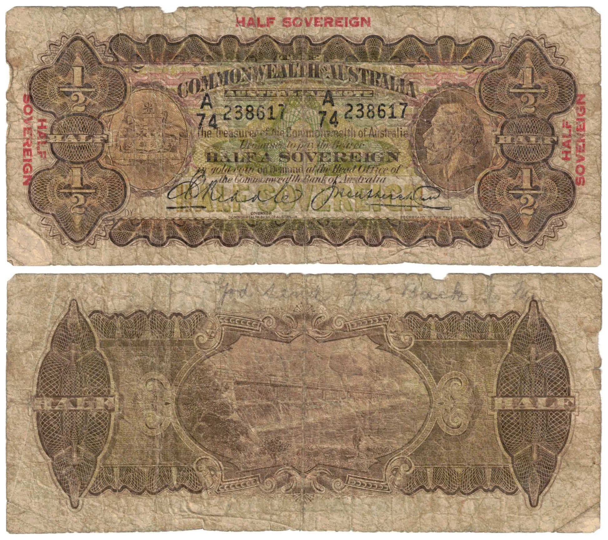 1928 Ten Shillings Riddle/Heathershaw R07 Fair Banknote