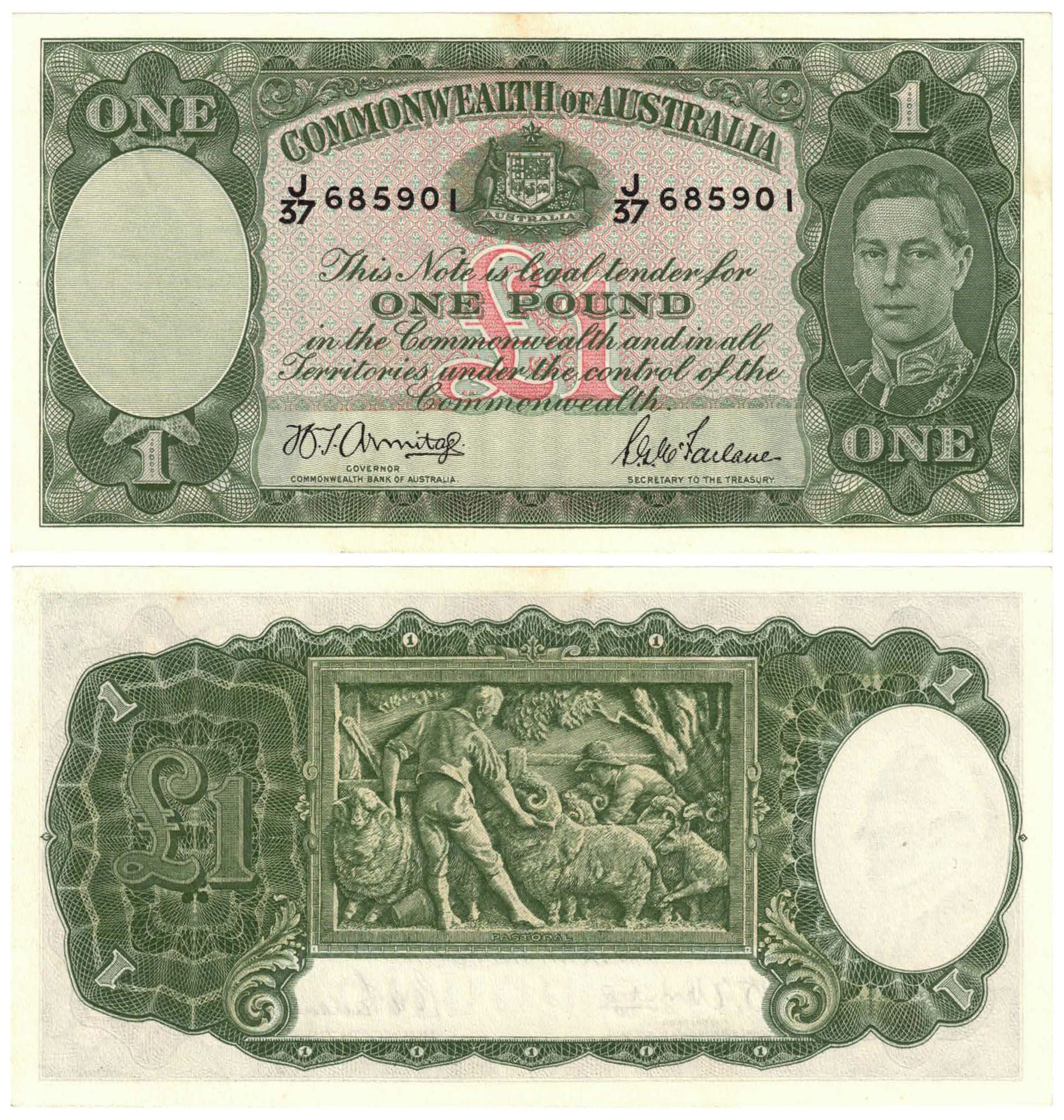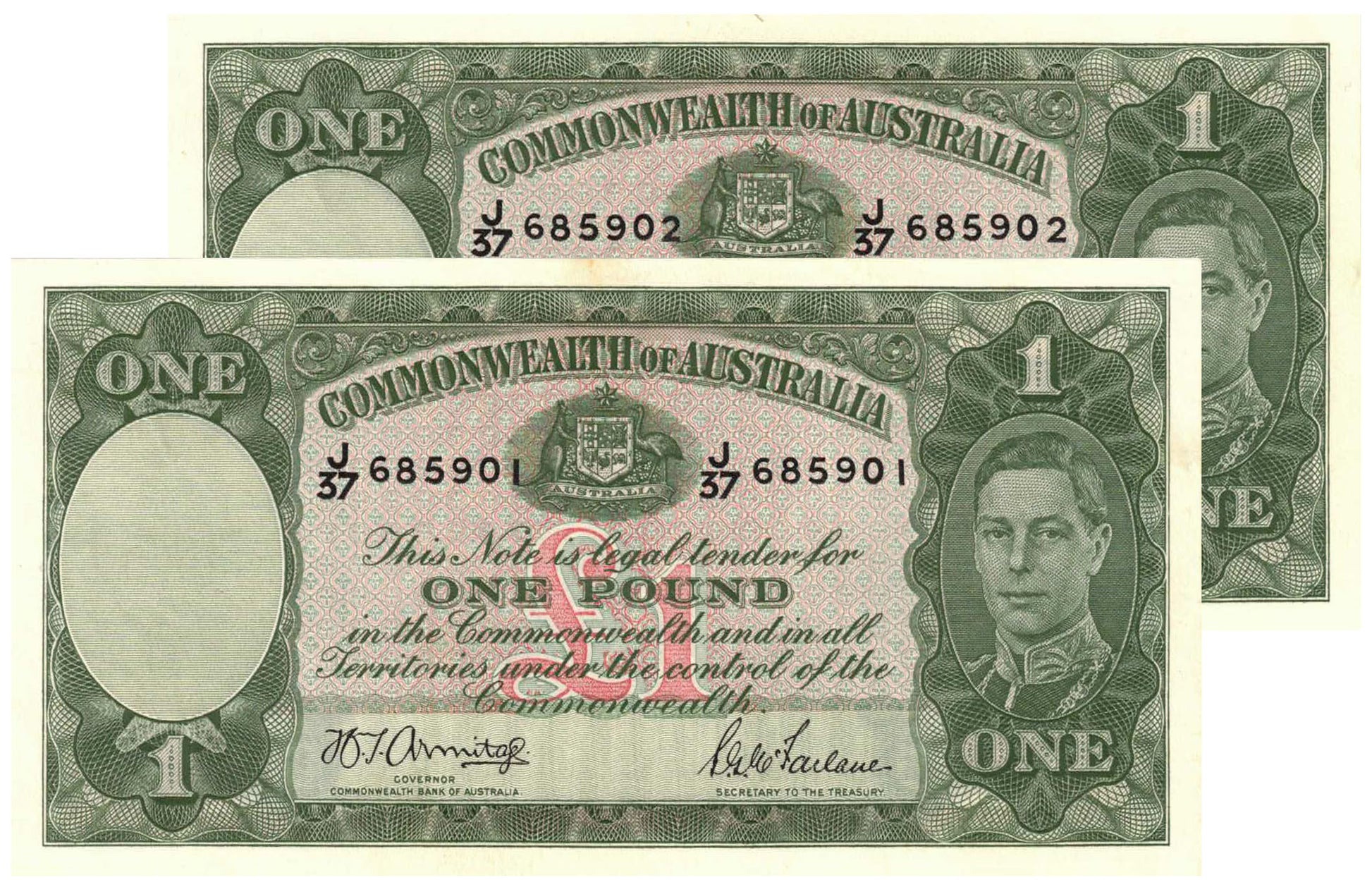 1942 One Pound Armitage/McFarlane R30a Uncirculated Consecutive Pair of Banknotes