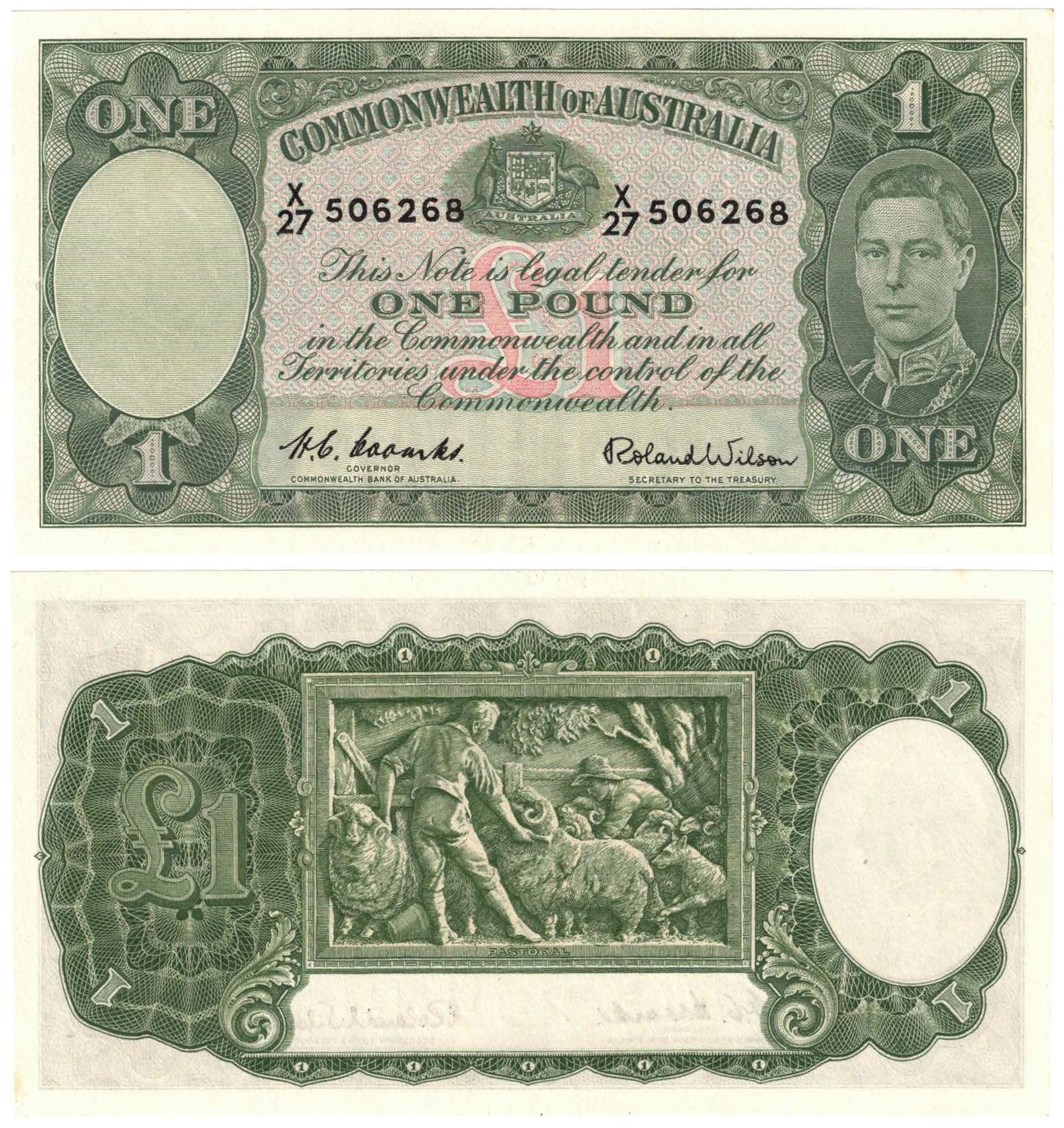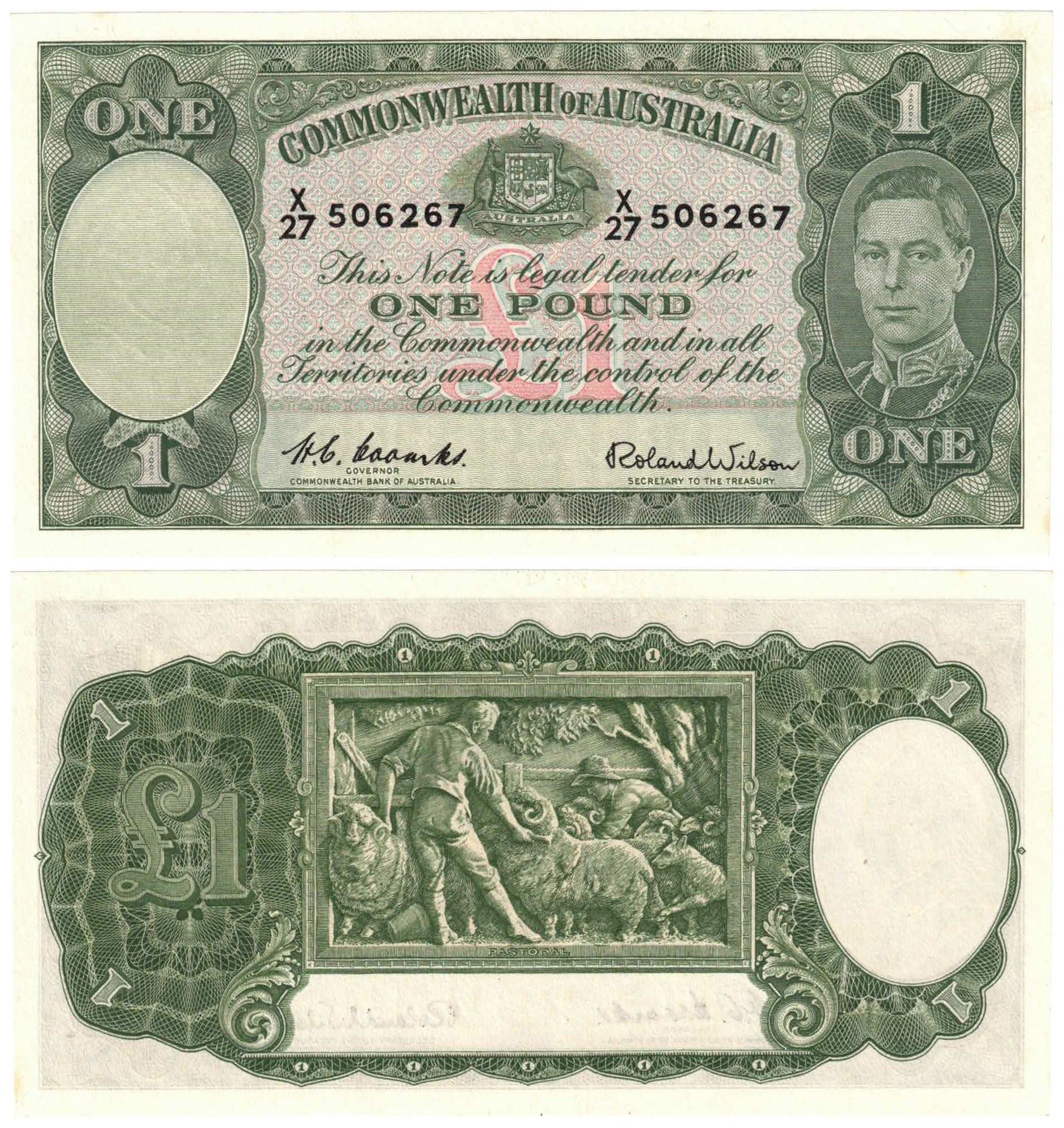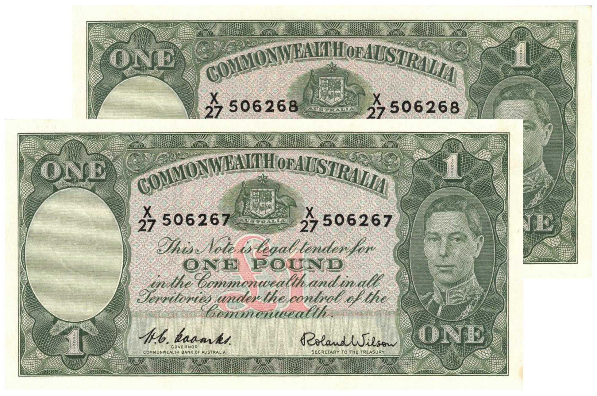 1952 One Pound Coombs/Wilson R32 Very Uncirculated Consecutive Pair of Banknotes